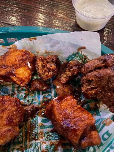 Incomible por que eran piedras y no comida lo que me dieron, fui a celebrar por mi cumpleaños por la noche, decido pedir una promoción de boneless que vienen en el menú y me dicen que no es valida por la hora, a pesar de no estar escrito en ningún lugar el mesero comenta que así le piden a el que lo maneje, se deja pasar y se le pide que traiga un platillo de boneless de 500 gramos y aqui todo fatal. La cantidad ni de cerca llegaba a los 500 gramos y por el precio pagado es una estafa pero ademas varios parecían piedras, tanto así que ni el tenedor se podía clavar, no se cuantas veces metieron a la freidora el mismo boneless pero el usar comida de otro día y venderla como fresca es inaceptable para un restaurante y menos para el precio, que agradezcan que no voy a poner una queja con la PROFECO, les dejo foto para que no vayan a comer ahí hasta que tengan mas cuidado en cocina, si se atreven a re-freir comida no imagino todo lo demás que no han de cuidar. también tengo vídeo lastima que google no me deja cargarlos
