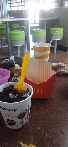Read moreEl personal en la caja es amable pero más que nada por qué tiene que hacerlo, la chica atendió algo seco. No acostumbro a comer tanto en McDonald's pero no recuerdo otro en el que mínimo no me hablarán para decirme que ya estaba lista mi orden o me entregaran en la mesa; yo personalmente despues de un buen rato fui a verificar si ya estaba lista y vi que tenían una charola en frente en el mostrador y no en algún lugar que lo mantibiese caliente; ya al preguntar si era esa mi orden la chica ya ni recordaba y no había nada de afluencia en la sucursal; ya que le dije mi orden me confirmó que si era y ya al comer la hamburguesa estaba bien solo las papas estaban frías y algo aguadas ya no le dije nada de las papas por qué en lo personal no me gustan tanto las de ahi pero para cualquier otra persona no creo que les hubiese gustado recibirlas asi. Antes de retirarme decidi ir al baño el cual estaba totalmente sucio, con el bote de basura a borde y papeles en el suelo, pisos desde que entras todos sucios, vidrios sucios en general daba pena teniendo todo el personal atrás del mostrador y con mínima afluencia de gente y que en general en la ciudad había poca gente paracia que todos salieron de vacaciones la poca gente que se quedó estaba abarrotando el KFC que esta en frente; el principal motivo que me hizo ir al McDonald's ya que fue mi segunda opción. Muy mala decicion de...