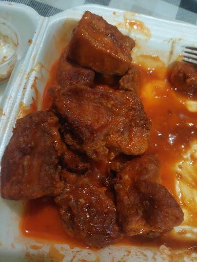 Las alitas de buffalo con parmesano saben deliciosas, sin una buena opción si no quieres comer picoso. Los dedos de queso muy ricos también. Los únicos detalles que he tenido cuando pido para llevar es que he pedido 1kg de alitas y me dan una bolsita muy pequeñita con apio y zanahoria, literalmente 3 pedazo de c/u para 1 kg si deja mucho que pensar... Cobran el servicio por pago con tarjeta. Y el baño que tienen en el local no es la mejor opción para cuando elijes comer ahí. El aderezo a ranch está rico, pero es insuficiente para el kilo también. Fuera de eso las alitas están muy bien cocidas y grandes, el sabor realmente...