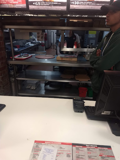 La pizza es muy buena, el mismo sabor de siempre el servicio en esta sucursal desgraciadamente cayó mucho, 1:32 horas para entregar un pizza en mostrador, la gerente preocupada por ajustar 100 pesos del corte, personal del mostrador echándole la culpa al personal de cocina, el personal de cocina se desapareció, la página de pizza hut no funciona para dejar comentarios, el chat de la pagina me desconecto a los 12 minutos de espera, por estar hablando con personal de mostrador, pero los 3 clientes si tuvimos que esperar la hora 32 minutos para nuestras pizzas, después de la entrega la pizza de pepperoni resultó ser de chorizo y champiñones, lo bueno es que había un little cesars cerca para poder comprar la de pepperoni que se tardo solo 5 minutos. Lastima de franquicia hoy perdieron...