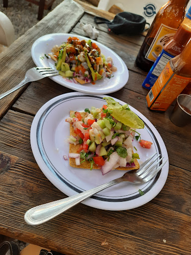 Pedimos chicharrón de pescado, le faltó un poquito más crujiente pero de sabor bastante bien. Pedimos ceviche mixto, muy bueno, bien servido. Pedimos unos tacos enchipotlados, y unos tacos de chilaca con marlin, sabrosos. El pescado empanizado en su punto. No se tardaron mucho en preparar, si a caso 15 minutos, tiempo bastante razonable.
