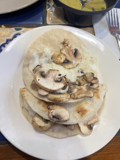 La comida muy buena por cierto, lo mejor fueron las quesadillas de huitlacoche, el menudo no tenía sabor y lo demás bueno