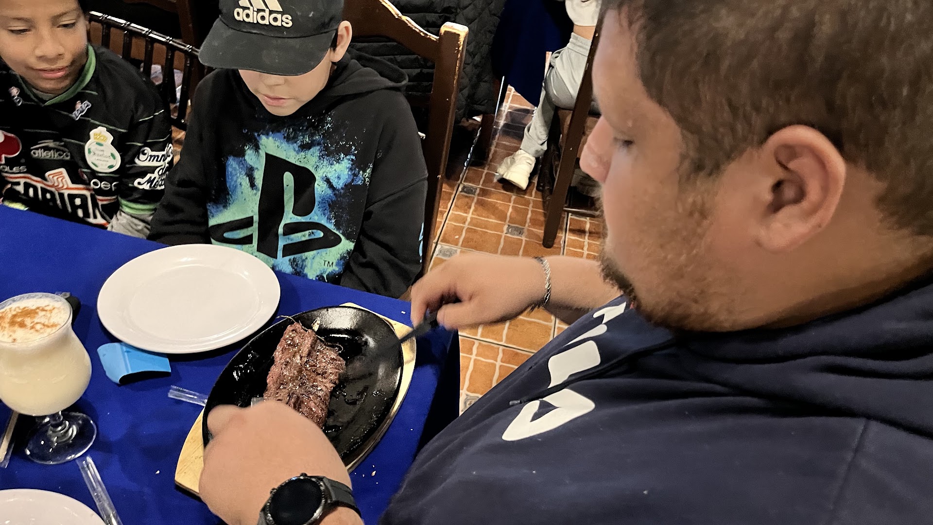 Delicious meal. My wife, mother, uncle, aunt, and I went to lunch here on a Sunday. I ordered a margarita to drink and my wife had a pina colada. The drinks were so big that they brought them in 2 glasses. We then ordered the family meal for 6 people. It starts with queso fondue, rajas, and chrizo. They then bring you charro beans that come with chicharrón in them. They are delicious. The main course is fajitas, Cabrio, and asadero. The meat was so tender that we all ate until we were about to burst. I definitely recommend Steak Palenque to anyone looking for...