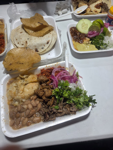 No conocía estos tacos, y eso que están cerca de donde vivo. Una experiencia diferente con sabores únicos. Por recomendación fuimos y 10/10 bien servidos. Para los que no están acostumbrados, no son tacos a los que los del norte conocemos, a estos les ponen papita y frijoles. Les recomiendo los platitos, que son charolas qué vienen en. Diferente presentación, yo pedi la mixta y viene surtido, chorizo, tripita, bistec, etc. Las aguas qué venden bien ricas, esta ocasión tenían de cebada y horchata. Tienen barra de salsas etc. El servicio si esta bien pero de tanta gente a veces se tardan. Se ubican en brisas sobre la plaza. De postre unas fresas con crema, $50 no están...