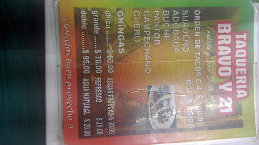 Tacos y gringas es lo que ofrece este local ubicado en las calles que lleva por nombre, ofrece distintos guisos; pastor, buche, campechana, suadero, entre otros cuantos mas, tiene un horario de 7 de la tarde a 1 de la mañana de martes a domingo. Sus tacos con copia son exquisitos y muy bien servidos, acompañados con cebolla asada o cruda y cilantro, una orden tiene el precio de $70 pesos mexicanos, aproximadamente 4 dolares, pero vaya que valen la pena, sin duda alguna no te quedarás con hambre aparte del gran sabor que estos tienen, tienen gringas también, tu eliges de que las quieres y te ofrecen la sencilla por $35 y la doble por $50. Puedes elegir entre comer afuera, adentro o para llevar. Un plus de su lugar de ubicación es que encuentras enfrente y a un lado las famosas micheladas de la bravo, y claro que las puedes acompañar con tu comida. Una recomendación es que vayas temprano o ya tarde si no quieres esperar 30 min. A que te atiendan en la hora pico ( de 9:00 a 11:00) ya que este es el unico pero que le ponemos a este...