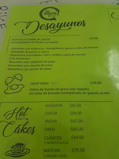 Acudí a desayunar a Green Zone y me lleve una grata sorpresa, para empezar hay Buffet de desayuno, te preparan los 🍳🍳al gusto, pedí un omelet de 1 solo huevo relleno de champiñones, pico de gallo y queso, muy bien preparado. Hay más platillos para combinar, solo que a excepción de los Frijoles y chilaquiles todo lo demás tiene carne y el anuncio dice Fit & Fat food. Jajajaa esperaba más opciones sin carne, como queso con rajas, papitas en salsa, nopalitos, quesadillas. El jugo verde estaba super delicioso. Las opciones de pan dulce también estuvieron muy bien, hot cakes calientitos además de un pay de queso, donas y así... Di el tour al local para tomar fotos para esta reseña y wow es muy grande, hay mucho lugar y la decoración es muy pintoresca, muy mexicana, con dibujos de la lotería y alusión a las chinampas de Xochimilco sin olvidar a Frida, ella siempre está ahora en todo lo que se decora como mexicano. Me encantó que hay salones también uno es de yoga y meditación y el creo que para canto. Super bien. Los precios son competitivos y la atención al cliente es muy atenta y amable. Disfruten su comida en Green Zone y a seguirse cuidando de la epidemia CVid. Saludos amigos y felices fiestas 2022.siganme para conocer más lugares...