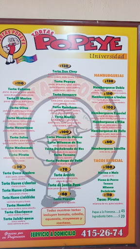 Me gustan mucho las tortas de Popeye. Considero que son caras, por lo que no las compro muy seguido, pero la verdad a veces me doy el gusto porque son muy ricas y están muy llenadoras. Además vale la pena comerlas con mucha hambre porque no son pequeñas. El local al que suelo asistir es el de Universidad, pero nunca nos quedamos a comerlas ahí sino que nos las llevamos a casa. También tienen servicio a domicilio. Muy buena opción para cualquier día que no quieres cocinar, tienes mucha hambre y quieres algo de enorme y...