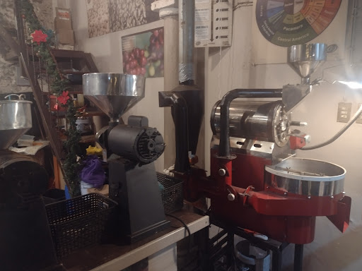 Tienen un tostador pequeño lo cual hace que estén tostado café de manera seguida y al estar ahí sentado tomando tu café tienes el aroma perfecto. Al entrar es la.parte donde preparan el café, hay que entrar al área donde uno se puede sentar.