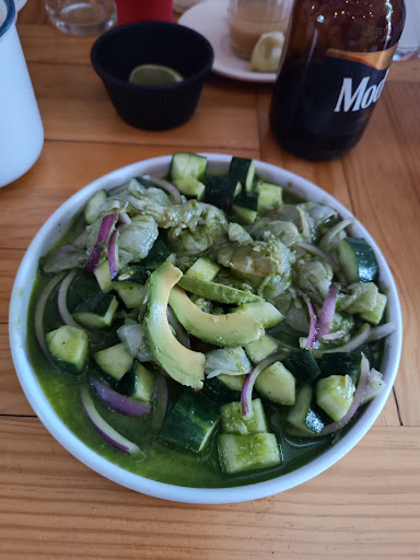 Read moreTengo que agradecer las cortesías de la anfitriona. Me respetó la reservacion y sabía de mí desde la llegada. El salón se ve muy afectado por el clima exterior, por lo que el calor interno se potencializa. Quizá un techo falso les ayude. El espacio en balcones es reducido. Sin saturar el salón, el servicio se ve rebasado. No obstante, la anfitriona se preocupó y nos obsequió dos cocteles tipo mojito, se agradece el gesto; sin embargo, fue mi esposa la que tuvo que esperar por un platillo (tacos), ya todos habíamos terminado cuando el platillo llegó. Ahora si, acepto que confundí el concepto del lugar, se trata de una cevicheria y parece ser que cumple con ese concepto, precios muy competitivos y podría decir que baratos para ser cevicheria. Aunque en gustos se rompen géneros, en mi opinión, en el mezcal de la casa, predomina el alcohol sobre las notas de agave y ahumado, por lo tanto, perdí el gusto desde el primer sorbo. El arroz a la tumbada es una propuesta especial del lugar muy recomendable, supieron salir de lo tradicional para entregar un platillo fenomenal, gracias por eso. Los chilaquiles de camarón son excepcionales, mejor que los que probé en La Paz, BCS., sugiero a la anfitriona reducir la porción de totopos e incrementar los camarones, creo que el segmento de clientes que acude al lugar estaría de acuerdo en pagar un poco más por ese cambio. Las empanadas de minilla también muy ricas, más con esa guarnición que sólo allí he probado. Gracias a...
