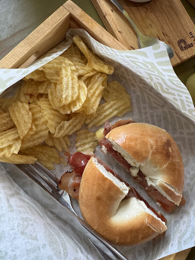 El lugar es bonito, puedes disfrutar un momento al aire libre mientras desayuno, si te gusta un café cargado, este es el lugar correcto, la propuesta de los desayunos es variada, pues puedes elegir crepa, bagel, ciabatta, entre otros y eliges el relleno. El sabor es bueno, pero en el caso de los hotcakes creo se puede mejorar, la verdad se sentían un poco "masuditos", pero buenos de sabor. Vale la pena ir a desayunar ahí. Aparte que el lugar tiene muchas áreas para...