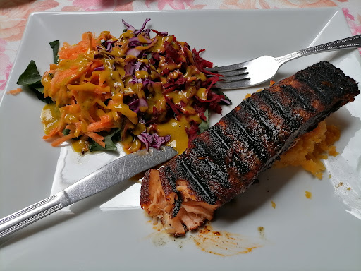 Read moreFantastic. Recommended by a barista in one of the amazing cafes. Wow. Was blown away by the service and food. The tables were clean, jazz relaxing music played in the background. I ordered salmon a la parrilla which came with a very tasty salad and on a bed of sweet potato. I had 2 glasses of agua de Maracuya for 291 pesos. Very good quality. They had provided me with botanas with Tamarindo sauce as I'm intolerant to chilli and cream. Tasty and...