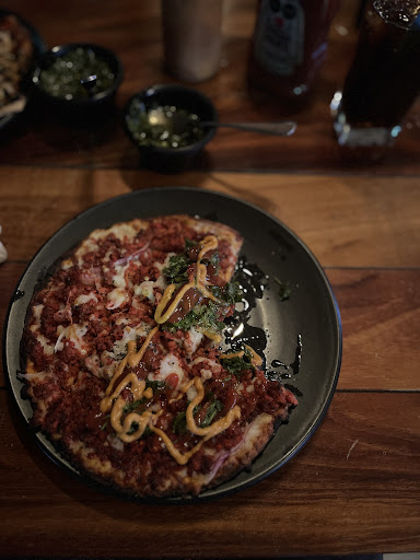 Acabo de descubrir este lugar. Volví a los 2 días de mi primera visita. Todo el personal es extremadamente amable y eficiente. El lugar está en una terraza en planta alta. Por lo que no hace calor, eso se agradece en Colima. Si vas en una noche fresca recomiendo llevar un suéter. Para los días calurosos tienen un área con aire acondicionado. La comida es muy rica, las pizzas son delgadas y crujientes, excelente sabor, si eres de buen comer tal vez no te llenes con una pizza. Recomiendo las entradas de bruschettas y los boneless, están muy ricos. El pay de queso tiene buen sabor. Habría que preguntar si hay más postres de los que aparecen en la carta. Lo mejor es la coctelería, mis amigos y yo probamos todos los sabores de Gin tonics y nos gustaron todos. Hay promociones según el día de la semana. Recomiendo...