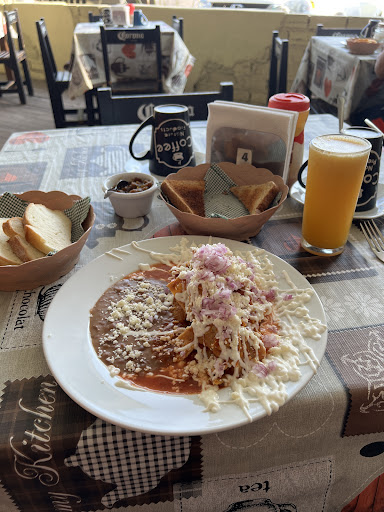 ¡LOS MEJORES CHILAQUILES QUE HE PROBADO! (Team chilaquiles rojos). Juro que nunca he probado unos chilaquiles mejores que estos, tienen la textura perfecta, la salsa mejor condimentada pero sin ser irritante, la justa medida de crema y queso, asà como el huevo revuelto. Acompañado de frijoles fritos y tu bolillo para mojarlo con la salsa. Además, los 3 tipos de salsa que te ofrecen lo complementan de la mejor forma, sobre todo el aceite de chiles tatemados. Este lugar me encanta por sus chilaquiles, la buena atención de su personal y que te dan de cortesÃa una mermelada de calabaza y unos panecitos para abrir apetito mientras esperas. Ese es el problema, hay que esperar, a veces hasta 40 minutos por unos chilaquiles. A veces por la cantidad de clientes y pedidos, otras, no entiendo el motivo. Me queda claro que hace falta una mayor organización o una cadena de producción dentro de la cocina. Soy alguien que odio esperar, y aún asà he ido unas 10 veces a desayunar, asà de buenos están los chilaquiles. Recomiendo visitar y apoyar estos...