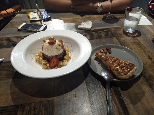 This is an interesting place in Colima, part of a local trend that's looking for to offer seafood in a more interesting and/or sophisticated presentations and recipes. I had the special seafood toast which was really good and the portion was decent, the price I also thought was ok. I also had the Michi taco which was Oki but it didn't leave a lasting impression in order for me to remember if there was something special about it. The dessert however was a Big disappointment, the description of the chocolate browny in the menu make it sound like absolutely delicious, but it was not good enough. We also had the guava pie for dessert and that was a better choice, it was...
