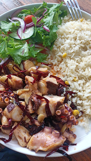 La comida es ¡excelente! Entre las tostadas, la costra con queso, el pulpo, el pescado zarandeado y la michelada de clamado delicioso.