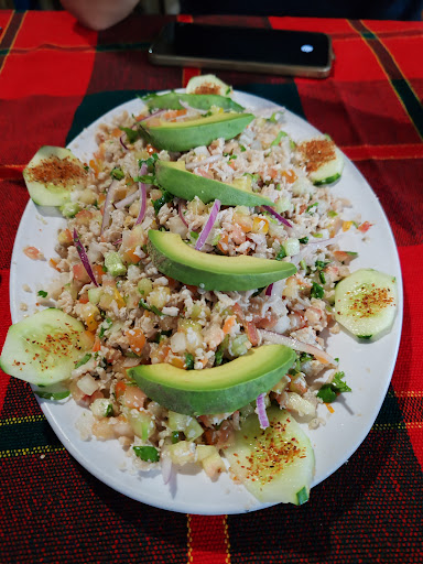 No esta mal la cocina cumple sin ser extraordinaria a mi gusto le falta el Flow del sazón que le de a los platillo ese toque qué resalte el sabor sin que se sienta artificial, por ejemplo el cóctel el consome tenia un tufo como a camarón seco molido o le moverán las cascaras del camarón para realzar el sabor, y aún así le faltaba sal, y eso que me gusta el camarón seco para botanear, pero creo que el sabor del estilo del cóctel es más simple y natural, pedí un filete relleno, la porcion era aceptable el relleno igual muy poco pulpo como lo de un tentáculo de unos 7 8 cm lo demás camarón, lo pedí asado, creo que era filete de Dorado lo que está muy bien el queso regular, es más no recuerdo realmente el sabor de este ahí es otro punto a mejorar, y al asarlo le falta que lo estén hidratado o bañando con alguna salsa o topin que le agarren una costra de sabor y no precisamente que sepa a más pescado o charal, si no como un sarandeado los precios ligera mente alros podrían ser un poco más contenido para la cocina que ofrece simple y sencilla regular-buena sin ser extraordinaria por los precios hay lugares con mejor cocina y...