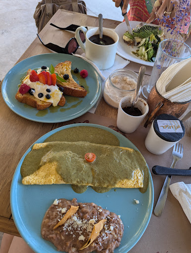 I enjoyed the French Toast while my wife tried a more traditional Mexican dish - the Crepa Azteca. Outstanding, original flavors! The Irish Cream lattes were brewed fresh and tasty. Atmosphere is very comfortable and natural, in the hills and away from the busyness of Manzanillo streets. Tanya, the owner, has excelled at creating the ideal breakfast and lunch menu and location. We'll be back! Larry and Harleen...