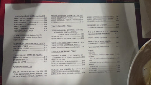 Restaurante tradicional tiene buen sabor y una cantidad espeluznante el plato de pozole grande especial, para dos personas que no sean de apetito boraz, se complementa con una jarra de agua de jamaica y para cerrar unas enchiladas dulces, sabrosas con mucha cebolla, queso y rábanos. Años atrás veces íbamos a las cenadurías de la villa, ahora vamos a la rueda en familia, con amigos y te llevas un rato agradable, la atención de los meseros es muy buena, se esmera la mayoría con los clientes. Tengo más de 30 años acudiendo a este restaurante. Se los recomiendo, lo que sea deteriorado es el lugar falta una remodelación, algunos cambios las ruedas de carretilla que decoran el área ya perdieron su brillo y la emoción de verlos. Un cambio de instalación le vendría bien y el área de caja hace falta darle vida, pero lo más importante la comida sopitos dorados, tacos dorados, pozole, enchiladas... Todo muy sabroso. Las...
