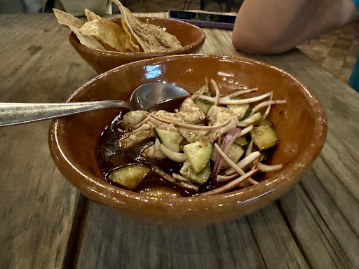 Read morePésimo, de las peores experiencias en restaurante que he tenido, si pudiera darle una puntuación menor lo haría, no regresaría por nada más que las bebidas. Ordenamos un ceviche de cueritos y setas que se lee “Rodajas de apio, setas, cueritos, cebolla oxidada, crema de Comala con un ligero picor, acompañado de la acidez del limón de Colima” y no tenía ni setas, ni crema, la cebolla estaba cruda y los cortes eran pésimos; chicos, grandes o tijereteados. Era más un aguachile de hongos a la plancha, consultamos a la mesera al respecto sin faltarle al respeto y nos dijo que así lo habían servido desde que ella trabajaba ahí, el gerente no le resolvió nada, regresamos el platillo, esperamos en total 1 hora por una hamburguesa, nunca se nos acercaron para nada. Todas las demás mesas, incluso las que se ocuparon después de la nuestra fueron atendidas y hasta habían terminado de comer. Terrible servicio, nuestra hamburguesa nunca llegó, dejamos en la mesa la cuenta de nuestras bebidas y nos retiramos, no nos dijeron nada en ningún momento. Es una cocina abierta, pero no se cuidan básicos como el uso de uniforme de cocina (cofia por ejemplo) y el orden. Realmente lo único rescatable es que las bebidas se sirven...