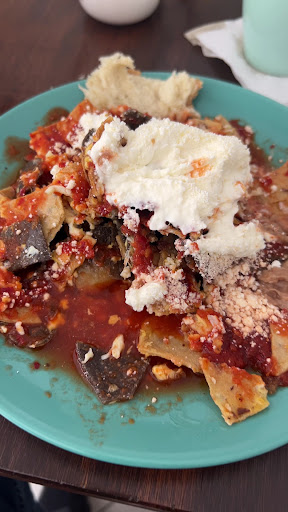 Read moreLos chilaquiles hay que revolverlos bien para que realcen su sabor, ya que al inicio por separado puede aparentar un poco sin sabor, con cebolla, crema, queso y un poco de proteína revuelto tienen un sabor muy agradable. Es pequeño el lugar con una gran variedad de chilaquiles, picosos como habanero o sin picante, están ricos. Eso sí, lleven sus frijoles porque no tienen 🤣.