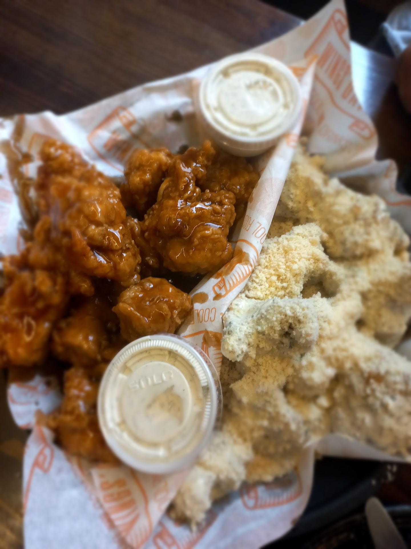 En cuanto a la comida, las boneless están bien. No son espectaculares, pero tienen buen sabor, y las porciones son bastante generosas, donde los trozos de pollo son de buen tamaño, lo cual es algo positivo comparado con...