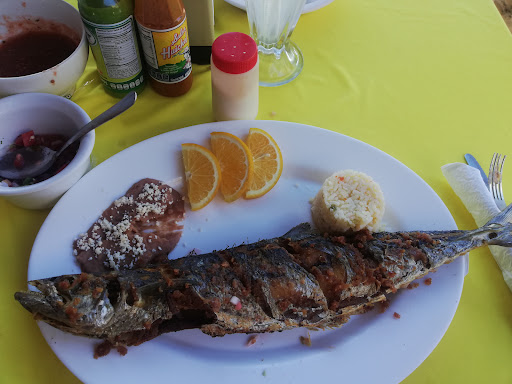 Read moreMuy agradable la vista directo a la playa, muy limpio el lugar pero por estar al aire libre hay muchas abejas y mosquero. La comida es rico, platos bien servidos pero a cada rato pasa gente vendiendote algo, sé que es su trabajo y de eso viven pero es muy molesto que estés en pleno bocado cuando te ponen ranas o vestidos para que compres, de verdad es un fastidio pero la vista y la comida valen la pena para aguantar a tanto vendedor. Comí un filete de pescado empanizado, acompañado de papas fritas, ensalada y arroz, con una limonada y después un mojito. Cuando vuelva a Rincón de Guayabitos regresaré a comer ahí. El mesero muy amable también, cabe recalcar que el Restaurante sólo es para comer, te hacen la aclaración que no.puedes estar todo el día ahí y menos.para dejar tus cosas mientras andas en la playa. Así que tendras que consumir ahí todo el tiempo que estés en el...