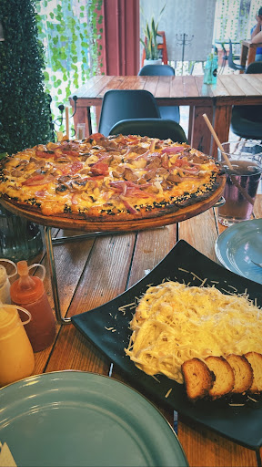 El servicio en un inicio fue rápido y amable. Lo negativo es que la comida tardo mucho en llegar para lo que se pidió. El lugar es pequeño, pero tranquilo y bonito. Pedimos pizza argentina, ideal por si les gustan las carnes frías y con diferentes aderezos en la mesa que agregaban mucho sabor a la comida (9/10) y para acompañar, pasta Alfredo, cremosa y con buen sabor (9/10), pero con el punto negativo de que venía con cuatro pedazos de pan, pequeños y quemados. Otro punto negativo fue la bebida, pedimos soda italiana, pero realmente parecía agua con gas y colorante, muy insípida para nuestro gusto que esperábamos...