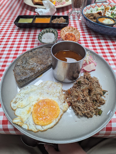 El lugar está bastante lindo, sin embargo los comentarios y recomendaciones generan una gran espectativa del lugar y dónde los alimentos no son tan buenos. Los frijoles puercos no tienen buen sabor, los frijoles negros bastante insípidos, el huevo con salchicha del menú infantil estaba quemado y era una sola salchicha cortada en 4 para hacer parecer mucho. Los chilaquiles rojos desabridos y la porción del guisado que acompaña el platillo es poca. En relación a las bebidas, el chai apenas tenía sabor pero resaltaba el sabor a leche además, al pedir café de olla te ofrecen leche pero no te comentan que ésta tiene un...