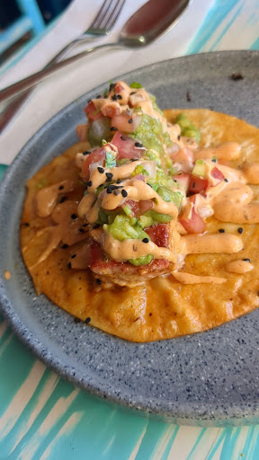 El lugar es muy agradable, no tienen estacionamiento pero eso no es problema ya que afuera donde encuentres lugar es zona libre. El aguachile de Jamaicame encanto, está deliciosa la salsa, pedimos tacos, tostadas y ceviches, todo excelente, el problema fue el molcajete ya que tarda muchísimo en llegar porque según esta hirviendo pero la porción a pesar de que tiene de todo un poco es muy poco. Los precios no están nada fuera de lo normal y sus recetas son estilo gourmet. La verdad lo recomiendo mucho. Luego dejan a grupos...