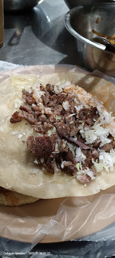 Read moreLos tacos están buenos....siempre está lleno, pero porque el dueño/taquero es muy lento para picar carne y displicente para atender cada pedido, se toma su tiempo y reniega por todo 45 minutos para 3 tacos naturales para llevar no es normal. Es increible como en 20 minutos solo sirvió 11 tacos, 2 pelluscadas, 6 mixtas y un taco de harina..no le faltaba nada, se limpiaba las manos, iba al asador a checar, pláticas de futbol, renegaba de pedidos especiales....otro detalle que no entendi fue porque si parece le falla la vista, no tiene ni luz para leer comandas. En fin el que tiene tienda...
