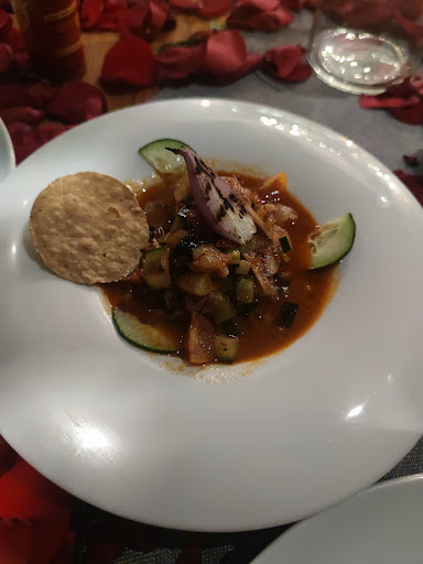 He reservado acá para el aniversario con mi esposa, por una cantidad a mi parecer, bien(350 pesos). Me han reservado y decorado una mesa con velas y pétalos para sorprenderla, pero al llegar el joven que nos ha atendido me preguntó -¿ Pidió una mesa decorada verdad?.. (siendo un poco rudo, la neta me arruinó la sorpresilla, pero no pasó de ahí). La mesa estaba bonita. Pedimos un mojito sin alcohol y una Coca-Cola, de entrada un ceviche de camarón rojo (muy bueno, la verdad, muy distinto, sabroso y la porción muy buena para la entrada.) De plato fuerte, hemos pedido una brasa burguer (también muy buena, la verdad) y un pescado en adobo tikin, pero unos minutos más tarde me avisan que no había nada de pesca, entonces cambien por una birria de costillitas grande, tambien muy buena, pero olvidaron darme tortillas que el platillo incluía y aunque la mesera lo supo al momento prometió llevármelas y lo olvido supongo, al final termine recordándose lo pero ya había terminado de comer sin ellas. La verdad los precios si están un poco elevados si no conoces el lugar, pero el sabor está muy bueno y distinto, si lo vale. Solo que yo tuve muy lento el servicio y las atenciones muy a lo lejos, nunca tuve a la.vista a la mesera para pedirle mis tortillas hasta que acabé y al mencionarlo solo me dijo, "híjole" riéndose. Jaja. Para postre pedimos un tiramisú, muy rico, pero igual tardaron mucho en entregarlo, de más! Jaja Si fueran más rápidos en las preparaciones y el servicio les daría las 5 estrellas. Cabe mencionar que el lugar estuvo casi solo mientras comíamos allí. Por lo demás, está bueno, está bonito y pues regresaré a probar las pizzas y pastas para tener la idea...