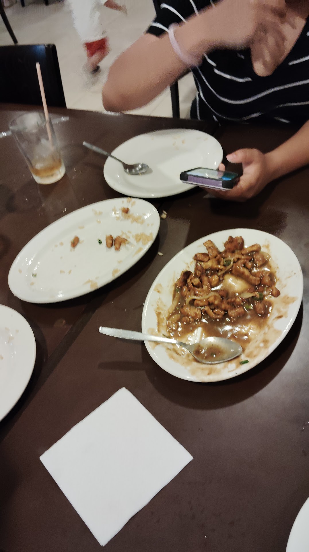 Read moreCuando llegamos nadie llegaba a atendernos, tuvimos que hablarles si no, no íbamos a pedir, la comida duro un montón en llegar como 48 minutos más o menos, cuando iba a llegar la comida, adivinen quien nos dio la comida, el mesero? no, el supervisor? no, LA DE INTENDENCIA, así con sus manos todas mugrosas sin lavarselas, acabando de limpiar una mesa, fue y trajo la comida, traia una hoja del pedido, y ni sabía q mesa era cuando nosotros estábamos a un lado de ella, y la comida la puso en una mesa sola sin nadie jaja, osea el fantasma se la iba a comer, cuando me enojé la vieja vino a la mesa y nos entregó los platos de mala gana, nos preguntó q si queriamos arroz de mala gana y yo me andaba secando y ni llegaba el té hasta q porfin llegó, la comida grasosa, medio fría y hasta me dio miedo comerla xq la de intendencia traia las manos bien mugrosas y asi agarro los platos, los cubiertos se ven de dudosa limpieza, el té fue lo q apenas puedo rescatar de esto, de la comida pues no estaba tan buena pero ni modo. Nos atendió la de intendencia, una de uniforme azul, y un plebe el cual casi ni hizo nada, no estaban haciendo nada, el servicio fue un desastre, a pero para cobrar ahí si bien rayo...