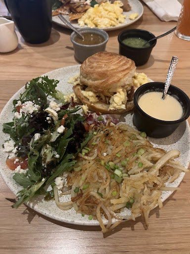 Read moreLas expectativas sobre este lugar eran altas, esperaba otro tipo de experiencia. El lugar es bonito, amplio, muy iluminado pero no cuenta con la comodidad de los sillones corridos si te quieres sentar junto a alguien, abren temprano pero la gente llena el lugar a partir de las 8am. Puedes estacionarte por tu cuenta en el sotano al lado derecho o hacer uso de valet parking. El sabor de la los desayunos cumple sin ser algo para recordar, el café algo tibio y la panadería luce bien, las piezas son pequeñas pero les falta alma de pan. Las porciones son suficientes y el personal está atento en...