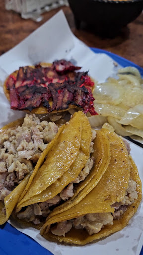 Con la idea de que se trataba de una sucursal de otro negocio ubicado en Venustiano Carranza, fui en espera de encontrar platos similares... y no, resulta que no es una sucursal sino el primer Rey del taco... No tengo la certeza de quién es dueño de la razón social, pero comprobé que aquí los tacos están más ricos. Probé los de machito, molleja y bisteck, además de la mitad de un pirata... todo delicioso, sin reclamo y sin culpa... Tendré que volver para confirmar si fue el hambre quién dictó el juicio o si realmente son mejores... Creo que eso es un buen pretexto para romper la...