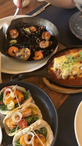 Read moreI write this as lifelong Californian dining in LA, Santa Monica, Newport Beach, Beverly Hills, etc. If this place seems expensive to you, please dine in those places and report back to us about the bill you paid. $80USD for all we got (a cocktail, kids spaghetti, paella but with squid ink noodles instead of rice, aka Fideuá, yummy lamb lasagna, three small yet flavor packed gyro sandwiches, fries, and a rich mushroom broth with truffle oil) seemed like a steal. Oh! And a Turkish coffee.