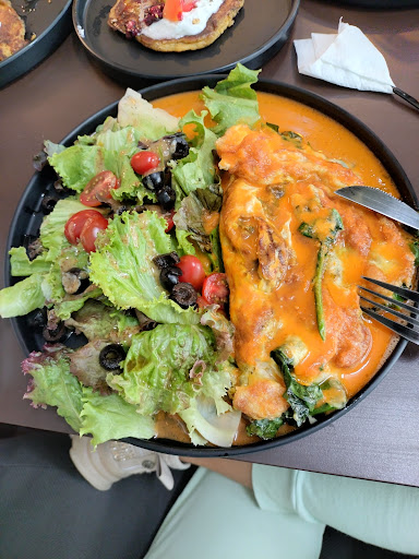 Hoy regresé pensando que el servicio podría mejorar así como la comida, pero fue una gran decepción. Ví el plato de un comensal en dónde se veía que dejó un huevo estrellado recocido. Fuí hoy con una amiga, ella pidió un frappé, tardó muchísimo en llegar y no tenía nada de hielo. Tuve que ir a buscar a la mesera porque estaba metida viendo el celular, y le explicamos que no tenía hielo el frappé y justificó diciendo una tontería en lugar de llevárselo sin decir nada. Al final le pedí le pusiera hielo y se tardó mucho en regresarlo. Cuando lo llevó sí tenía hielo. En un momento otra persona del servicio (un hombre) puso la música a alto volumen y le pedí que le bajara para poder conversar. Parece que la música la ponen para ellos, no para ambientar. Mi bebida amarilla (un jugo) estaba al tiempo. Ninguna revisión a lo que sirven.