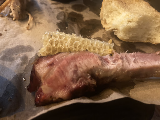 Read moreLo bueno; el lugar y la plaza en si esta padre, la atención buena, vi que era 2x1 la Cheve. Lo malo; todo helado, no frío, helado, el brisket para pasar”16 horas” ahumando estaba crudote, igual las costillas, el pulled pork ya olía raro , las alitas y el puré era lo único rescatable, todos los empleados detrás de la barra comiendo, los mismos empleados que manejan tu comida, un par de ellos ahí besándose, comprendo que a la mejor es lugar chico no hay área de empleados pero tampoco uno como comensal quiere estar viendo ahí al cocinero comiendo y entrando a seguir sirviendo con el mismo guante. Vi un pedido para llevar calentado en bolsita también. De lo que pedí deje el brisket el pulled pork y la costilla no estaba mala solo le faltaba cocción. Igual los elotes bastante fríos. Hay mucho potencial, y al ver las buenas reseñas quiero pensar que era una mala noche, y usualmente le hubiera comentado al encargado pero al ver los empleados supuse que no...