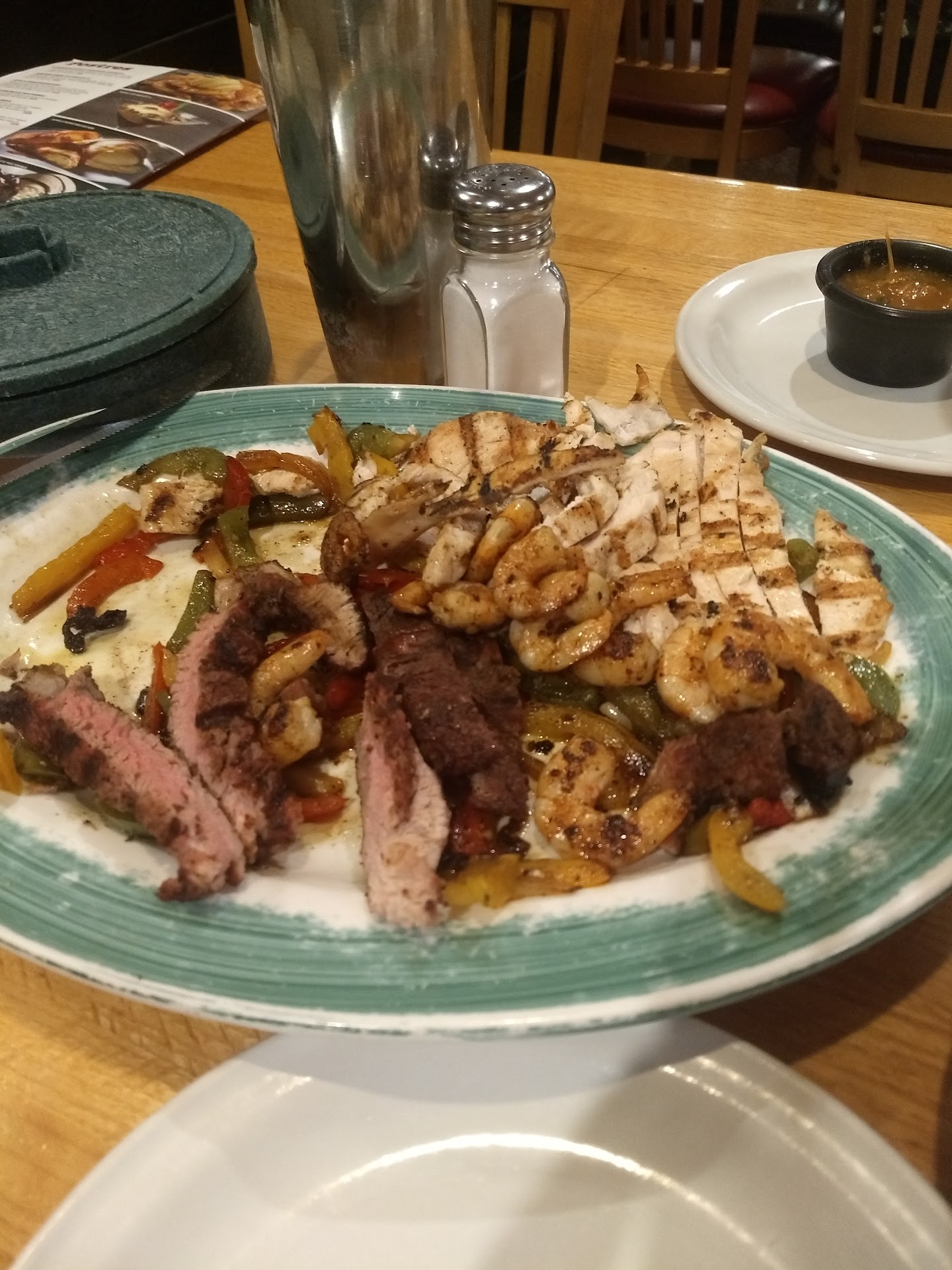 Read morePues es una pena comentarles que no tomamos limonada pues no había agua mineral , tampoco mojitos pues no había menta, no pudieron darnos salsa majada pues se acabó, el postre que lleva caramelo tampoco pues se sirve con cajeta tuvimos que cuestionar al mesero pues los platos de fierro para mantener comida caliente tampoco había , por lo que nuestra comida o parrillada se enfrio por cierto nada jugosa ..... Bien el mesero se quejo con nosotros que hacía falta muchos insumos , Que muchos comensales se han ido por falta de muchísimas cosas más Ojalá que los dueños de applebes pongan atención en este restaurant pues tiende a la baja por tan mal servicio y no por sus meseros sino por la falta de productos necesarios , bueno y también la falta de personal Ya lo verán en las fotos todas con...