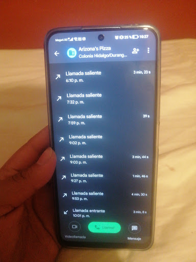 Read morePésimo servicio a domicilio, tardaron 4 horas en entregarme mis pizzas, la primera vez que la enviaron según el repartidor llegó y no salimos y luego la enviaron otra vez y que no dieron con la dirección luego volvieron a marcarme que no el primer repartidor no lo dejaron entrar unos perros y no entraban llamadas, pero la señorita de recepción me marco y luego luego entro la llamada, me gustan mucho sus pizzas pero por cosas así pierden clientes y ni como rechazar el pedido por qué ya eran las 10 y ya a esa hora donde encuentro un lugar abierto para comer cuando mi pedido se hizo a las 6 y aquí están los historiales de llamadas para que confirmen que se...