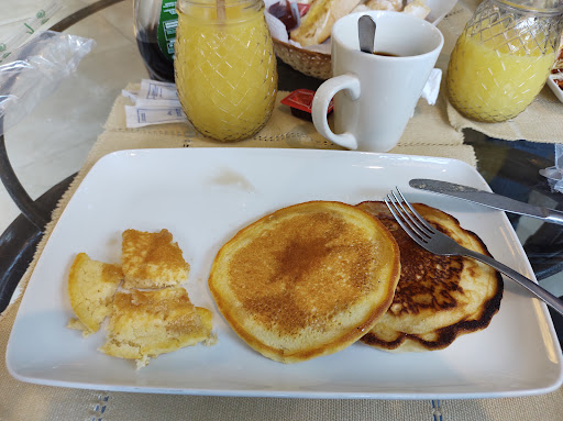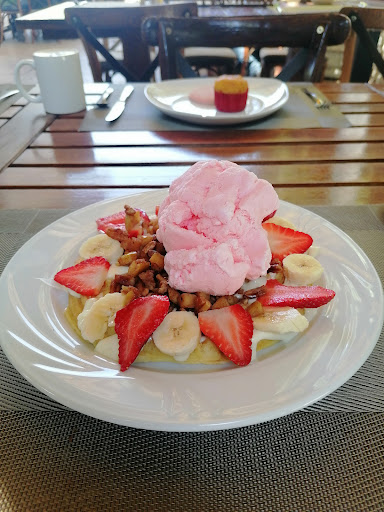 Read moreEl lugar tiene una excelente decoración el patio es fresco y amplio se siente muy acogedor. Sus plantas por todos lados es algo que disfruto mucho. Llegué temprano y ya había gente. El café ☕ de Olla es muy rico. El toque del pan de cortesía es muy rico. Yo pedí los huevos benetictos muy ricos. Sus smoothies son muy frescas. Para postre unos waffles especiales, una gran porción de nieve. El único que si note es que su personal se ocupo con varias tareas al mismo tiempo y no tenían la atención que uno puede esperar de un como estos. Tal vez ocupan más personal. Pero aún así es bueno...