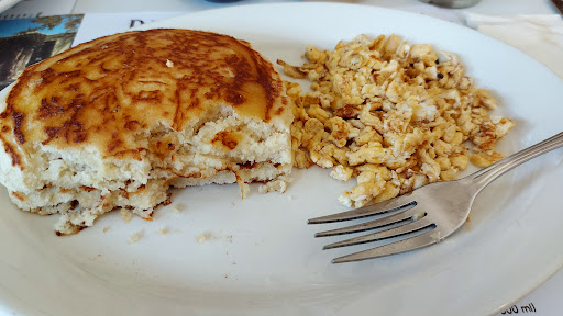 Read moreFuimos a desayunar un domingo, las meseras tenían cara de cansadas o de no querer estar ahí, y transmitían una vibra super mala, fueron muy rápidas para todo menos para cobrar, tuvimos que ir directo a pagar a caja y se molestó la chica que nos atendió, diciendo que debimos esperar a que ella recogiera la comanda, y también al ver qué no dejamos el diez de propina nos hizo una cara de desagrado muy evidente. Los chilaquiles son demasiado picosos (inclusive los tomatosos que de tomate no tienen nada, es puro chile) y el huevo y los frijoles sin sabor, solo super salados. Los pays parecen más bien gelatinas y saben a que tienen mucho tiempo en refrigeración (no son de preparación reciente). El jugo es demasiado pequeño para su...