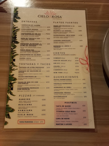 Read moreAbsolutely amazing experience at Cielo Rosa! The restaurant is stunningly beautiful with an ambiance that perfectly combines elegance and warmth. The view from here is just breathtaking, making it an ideal spot to take in Durango’s charm. Not only is the setting wonderful, but the prices are also very reasonable, especially for the quality of the food and service provided. Cielo Rosa is perfect for any celebration—whether it's a special occasion or simply a night out with friends. The staff is friendly and attentive, making you feel welcomed and well taken care of. Highly recommend for anyone looking to enjoy a memorable...