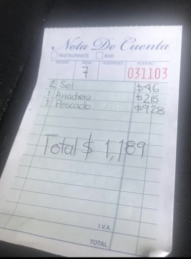 Read moreUn pescado frito $928. El menú solo dice depende del peso, no tiene precio por gramo, ni cuanto peso excesivamente caro por un pescado de max 400 gms ya cocinado. Arrachera un sabor incipido, y creo a la plancha por lo cual agarra el sabor de lo último que cocinaron en ella. Pregunte a la señorita si el precio del pescado estaba bien y me dice qué sí, es lo que vale, tbien le hicimos saber de una salsa qué ya estaba burbujeando de lo mala qué estaba. Definitivamente no vuelvo. Si van a cobrar esos precios ay que establecerlos bien en el menú y especificar e gramaje si es que en realidad es el precio que vale. Si no ay que ver eso con el personal. Por lo pronto no lo recomiendo en...