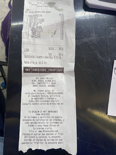 En esta reseña me refiero exclusivamente a la sucursal que está en Plaza Imagen, Blvd. Miguel Alemán, Gómez Palacio. No se merecen ni una sola estrella. El lugar está sucio y el servicio es pésimo. Tiene una doble planta pero no te llevan tu pedido. Tienes que esperar a que te entreguen tu comida y subir por unas escaleras estrechas y empinadas, muy peligrosas porque no hay luz suficiente para que puedas subir de forma segura. El trato que te dan los empleados es grosero, es decir, yo se que tiene muchos pedidos que despachar pero el servicio al cliente es importante, sin embargo, ellos están con su mala cara todo el tiempo y cuando el encargado les pregunta sobre tu pedido le contestan molestos. Fuimos con antojo de saborear el crujiente pollo que tanto promocionan en televisión y si, la textura externa es muy crujiente pero lo que hay debajo da asco, el pollo está viscoso, tiene partes enrojecidas, no tienen sabor y resulta muy desagradable comerlo. No sé si los empleados de esa sucursal lo están cocinando mal o si el pollo Kentucky así es, pero no me gustó para nada. Definitivamente no vuelvo, fue dinero tirado a la...