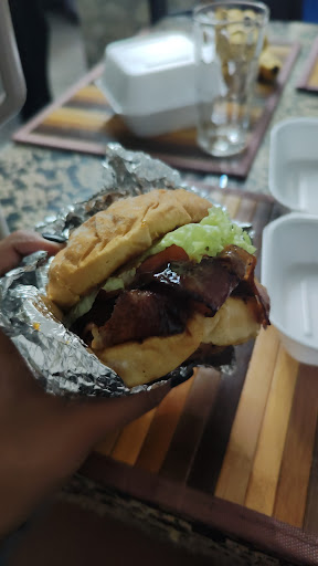 Estaba cansado de la hamburguesa convencional, y desde el primer día que las probé supe que serían diferentes, quedé fascinado por la variedad de hamburguesas con ingredientes tan diversos. Las favoritas, vale la pena probar todas y cada una, no puedo esperar para regresar. El ambiente no es tan bueno, pero se entiende ya que es un puesto callejero, están ubicados frente a un establecimiento que ofrece pasantías, y se escuchan constantemente a un lado de donde están las mesas, así que puede que mientras disfrutas tu hamburguesa de paso aprendas a dividir, aún así no es muy molesto. Definitivamente tienen que probar estás hamburguesas. Completamente...