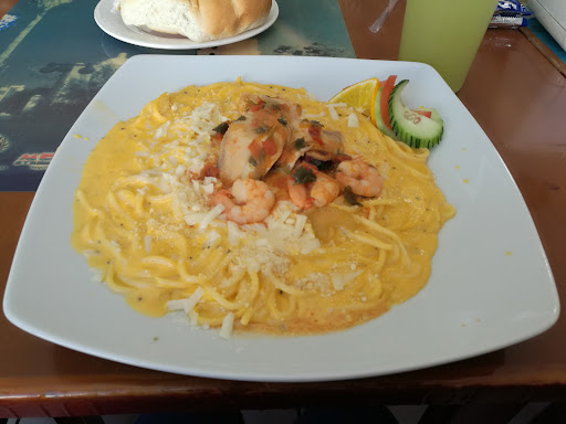 Read moreEl lugar está rico, mi novio feliz porque por fin encontró un cóctel de camarón justo como lo preparan en su casa (veracruz); en lo personal a mi no me gustó, demasiada catsup y dulzura, gracias a Dios yo no lo pedí... No éramos tanta gente... lo normal y pedí unos camarones en crema de ajo... para no hacérselas tan larga, para cuando mi novio iba a la mitad de su segundo plato ( pescado relleno, ese estaba bueniiiiisimo) me trajeron por fin mi plato y lo había pedido con ensalada verde e hicieron caso omiso... en lo personal la crema estaba rica pero no deliciosa... y...
