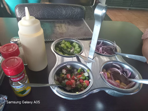 Las bebidas están muy caras y no hay espacio para estacionamiento tuvimos que estacionarnos 4 calles más adelante y venirnos caminando hacía el restaurante. Y la muchacha que estaba como anfitriona nos regresó porque tenía una botella de agua apesar que le expliqué sobre mi problema de salud no le importo porque quiera que comprara una de sus botellas de agua de $35 pesos. Apesar de que están a 3 edificios de un oxxo de dan las botellas de agua a $11 pesos. También me di cuenta que había muchos mosquitos en el lugar donde nos sentaron. Yo no regresaré a este restaurante por la actitud de la anfitriona. Pero me gusto la calidad de la comida. Yo ordené camarones al coco me quedé muy satisfecha con mi platillo. Talvez la próxima vez solo hacer una orden...