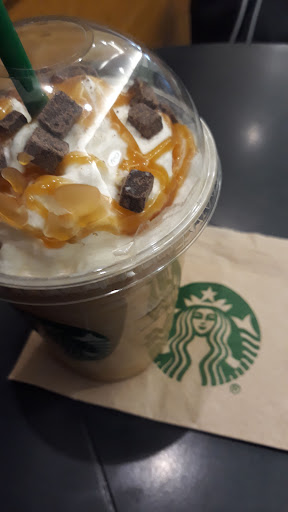 Read moreStarbucks se caracteriza por su sabor,, atención y buen gusto por la decoracion para tener un ambiente relajante a la hora de asisitir a un establecimiento de esta marca. En este caso todo cumple y como toda franquicia a veces no esperas y las veces que si no es mucha la espera. El sabor no se poerde, la bebidas estan hechas a estilo Starbucks. El lugar aun que pequeño esta en una plaza y todo se...