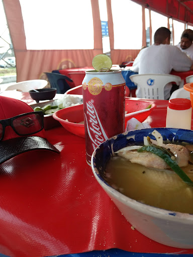 Buenos caldos de gallina, hay para preparo cebolla, cebolla con chile serrano picado, limón, salsa, chile en polvo. Además hay nopales con cebolla y zanahoria para acompañar. Sirven bolillo para comer o tortillas. Ir de preferencia temprano para alcanzar todas las piezas. De bebidas encontrarás refrescos, jugos, sangría, cerveza y aguas de fruta natural. Los domingos hay música por un trovador. Y también hay algunas personas...