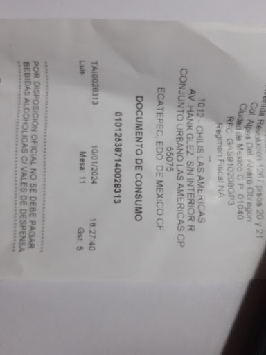 Read moreEs bueno y sucursal de las Américas es de los mejores. Sin embargo ha bajado mucho su nivel. Comenzando porque las limonadas son artificiales, mismo por lo que ni de chiste pido una y ni pedir un limón para el pescado o para tu coca fría porque simplemente no tienen. No recomiendo para nada pedir comida para llevar ya que las cantidades de los alimentos son míseras. Las alitas de Chilis para mi gusto eran las mejores hace unos años pero no sé a qué se deba que ya no son tan ricas como antes, sólo están pasables. Para los que tenemos una alimentación limitada y exigente por cuestiones de salud en muy difícil lidiar con este tipo de restaurantes dónde aún lo aparentemente más saludable no lo es, en la carta no definen bien lo que contiene cada alimento y cuando uno quiere cambiar alguna cosa o de plano te dicen que no se puede o todo te quieren cobrar extra. Aún voy de vez en cuando pero cada vez menos y no sé cuando de plano ya no querré ir porque de verdad han bajado la calidad en todo. Ésta ensalada por ejemplo de $236 aprox. (No recuerdo con exactitud) es rica pero pobre en cantidad, y siendo que no tolero alimentos tan irritantes que no sabía que contenía porque la carta no lo específica tuve que comérmela pero me hizo daño y sin estar satisfecha en ningún sentido. Triste de verdad que pase esto en restaurantes que antes...